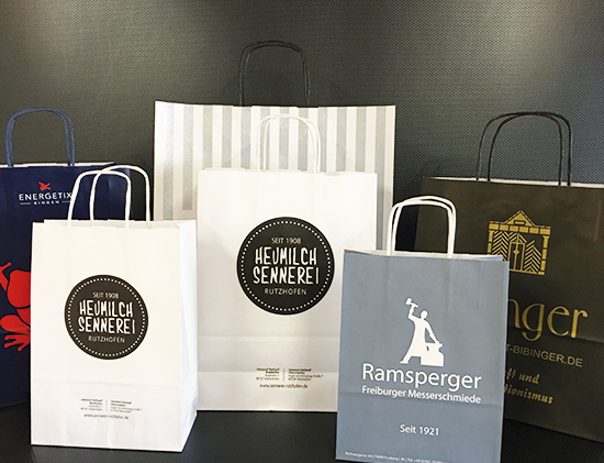 Speziell für Firmen und Geschäfte die Papiertragetaschen für Werbung bzw. Promotion nur in kleinen Stückzahlen benötigen. Unsere Tragetaschen aus Papier sind vorgefertigt und sofort lieferbar.